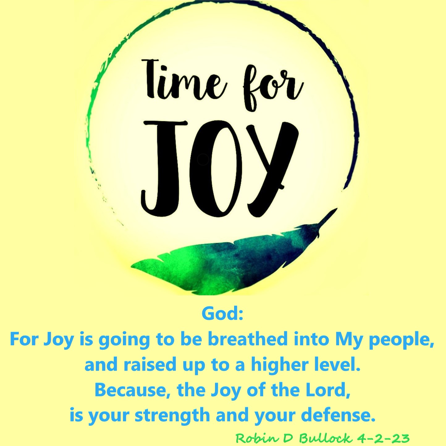 God: For Joy is going to be breathed into My people, and raised up to a higher level. Because, the Joy of the Lord, is your strength and your defense. (Robin D Bullock 4-2-23)