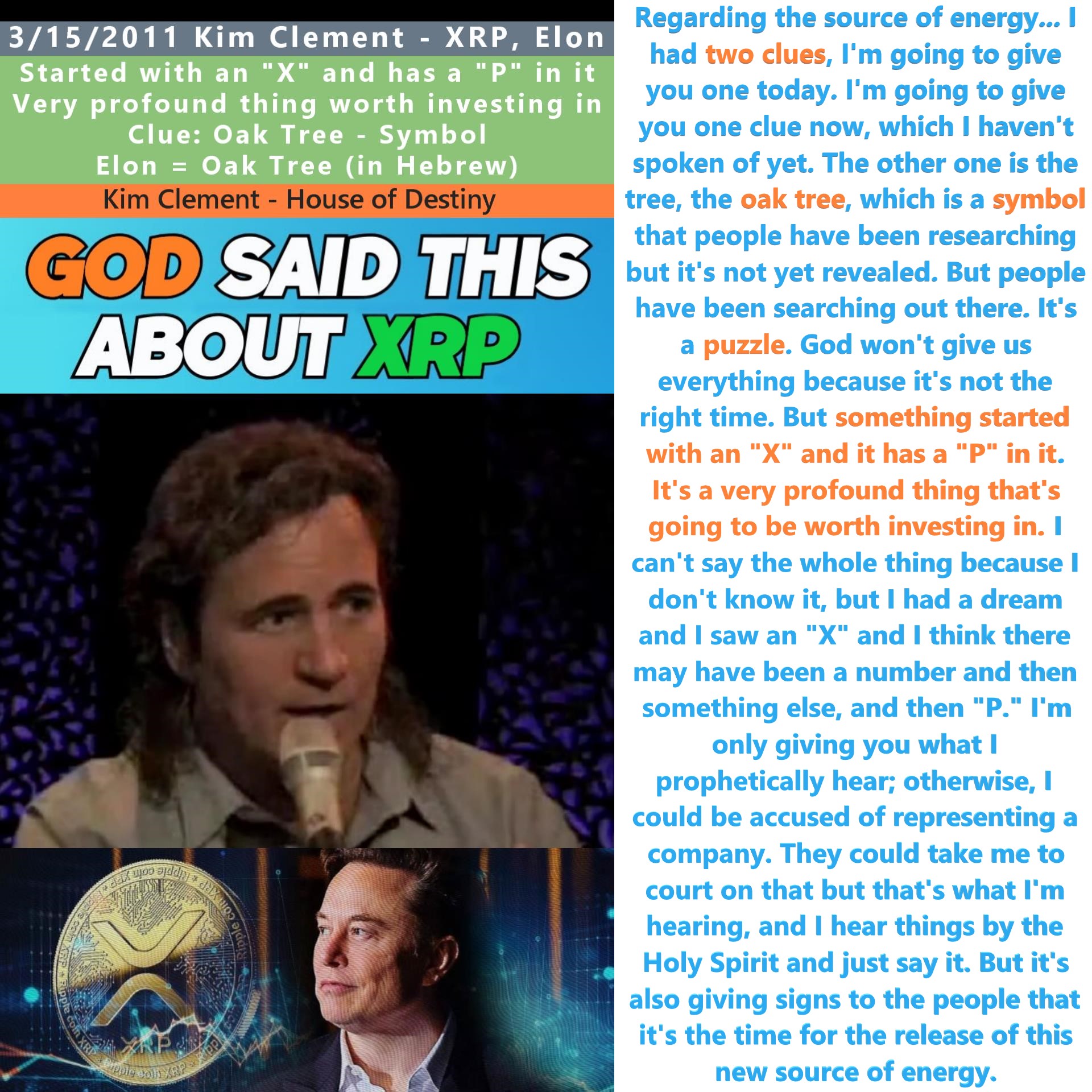 5 thoughts on “Kim Clement’s XRP Prophecy & Elon Musk’s Oak Tree Connection!”
