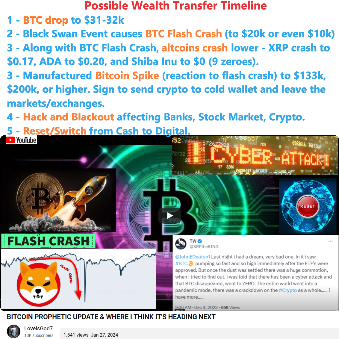 Possible Wealth Transfer Timeline shared by LoveisGod7 channel on 1/27/24. See My Summary, partial transcript, and video link below: