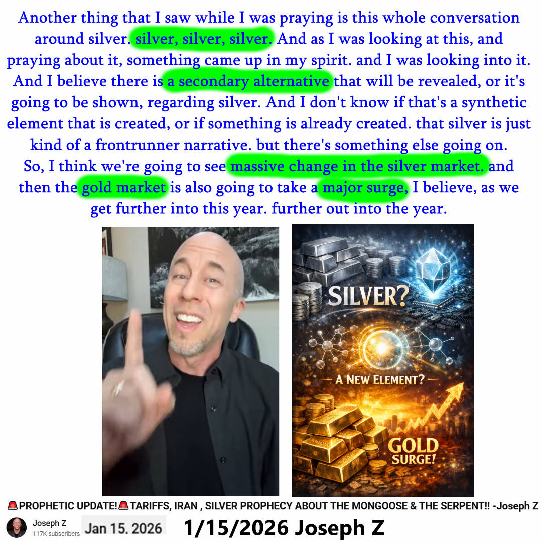 A secondary alternative to Silver will be revealed. Prophecy by Joseph Z on 1/25/2026. See partial transcript, ai summary, and video link below: