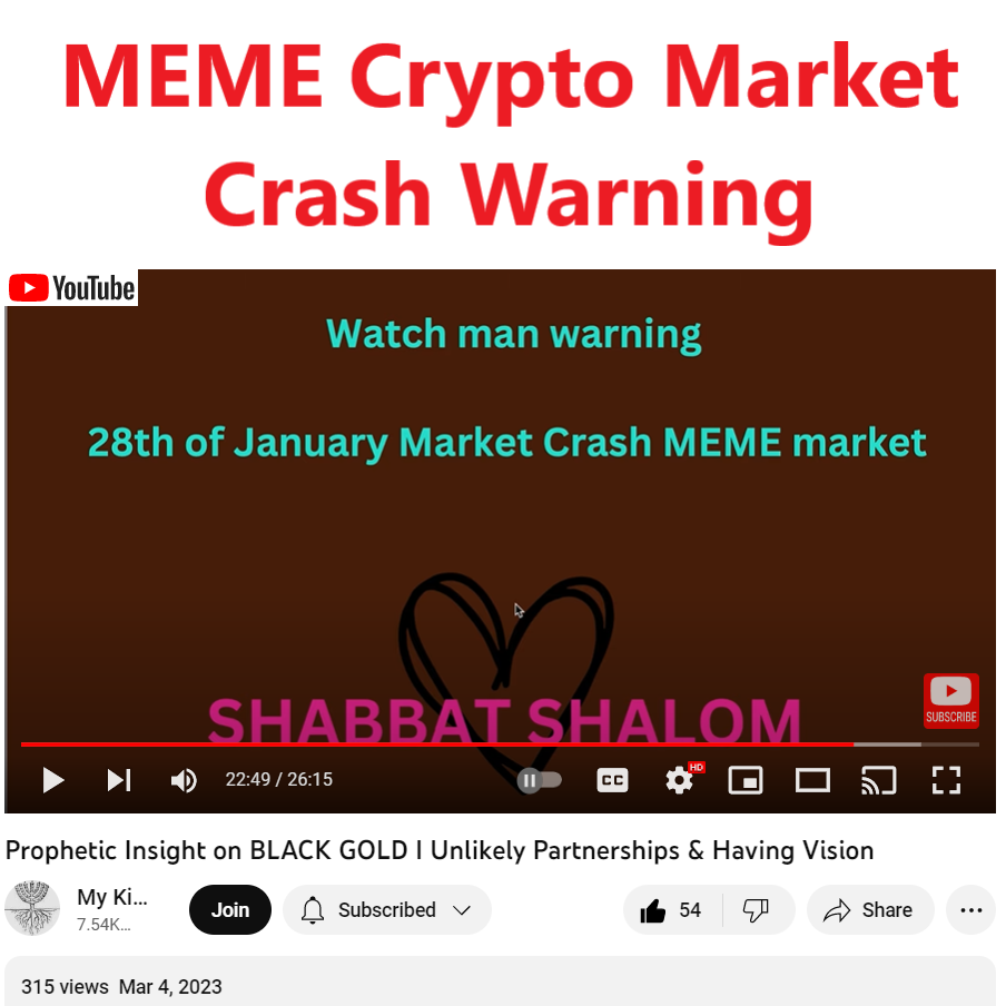 On 3/4/23 My King Yeshua ( My King Yeshua ) shared a MEME Crypto Market Collapse Warning dream. On her channel, she (My King Yeshua) did mention she does own Shiba Inu. So I think we might be okay with Shiba Inu, since so many people prophesied about it. Please see video link and partial transcript below.