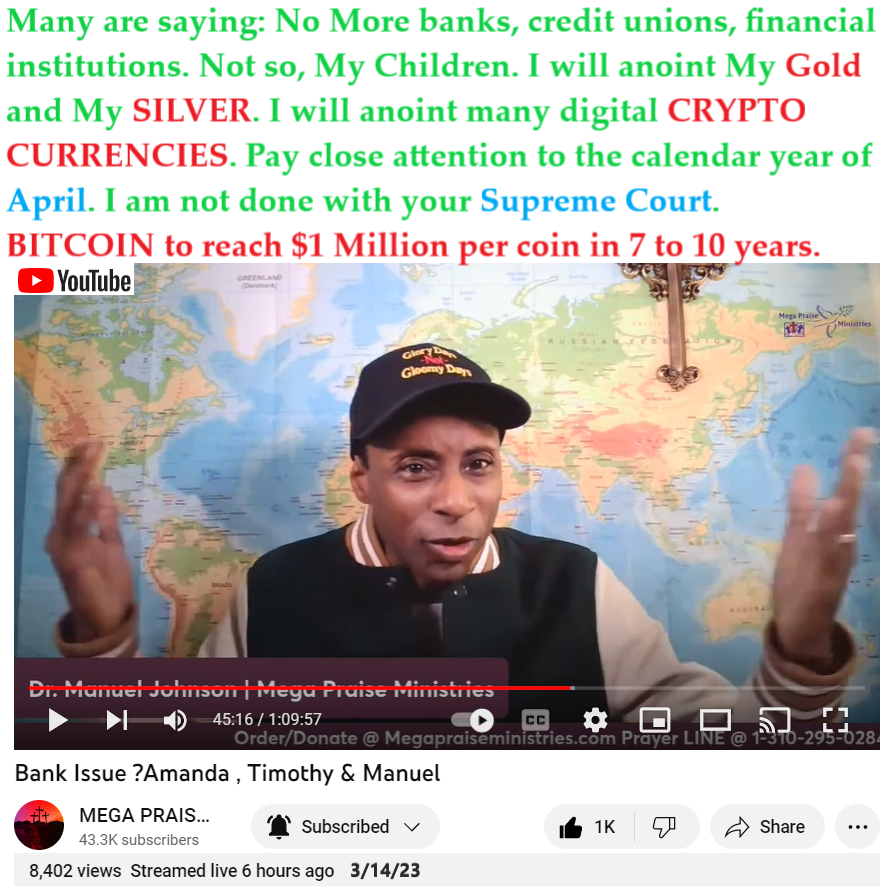 Manuel Johnson (@megapraiseministries123 ) shared a new prophecy on 3/14/23. Please see video link and partial transcript below. Also see on WordPress: