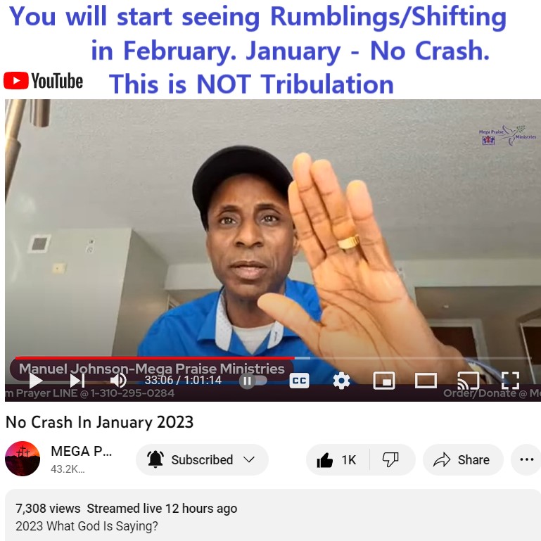 No Crash in January. Sound of Abundance. Start of Rumblings and Shifting in February. This is NOT Tribulation. 1/26/23 Prophecy by Manuel Johnson. Please see video link and partial transcript below: