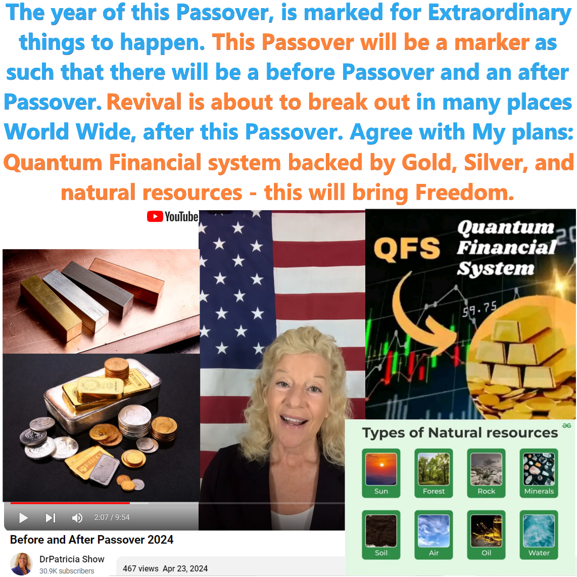 Passover and Quantum Financial System prophecy by Dr Patricial Show-Green on 4/23/24. See partial transcript and video link below: