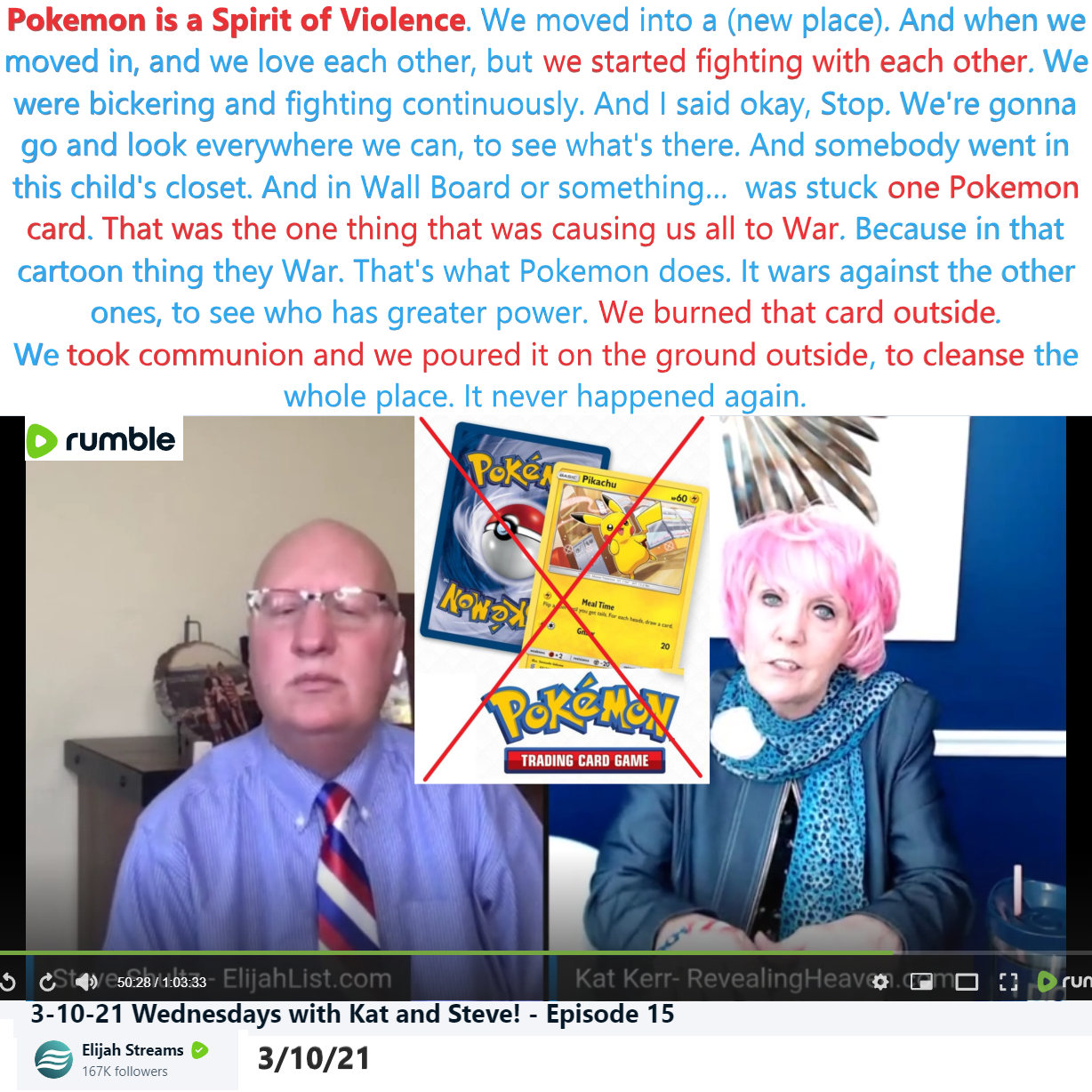 Pokemon is a spirit of Violence. Warning by Prophet Kat Kerr on 3/10/21. See partial transcript and video link below:
