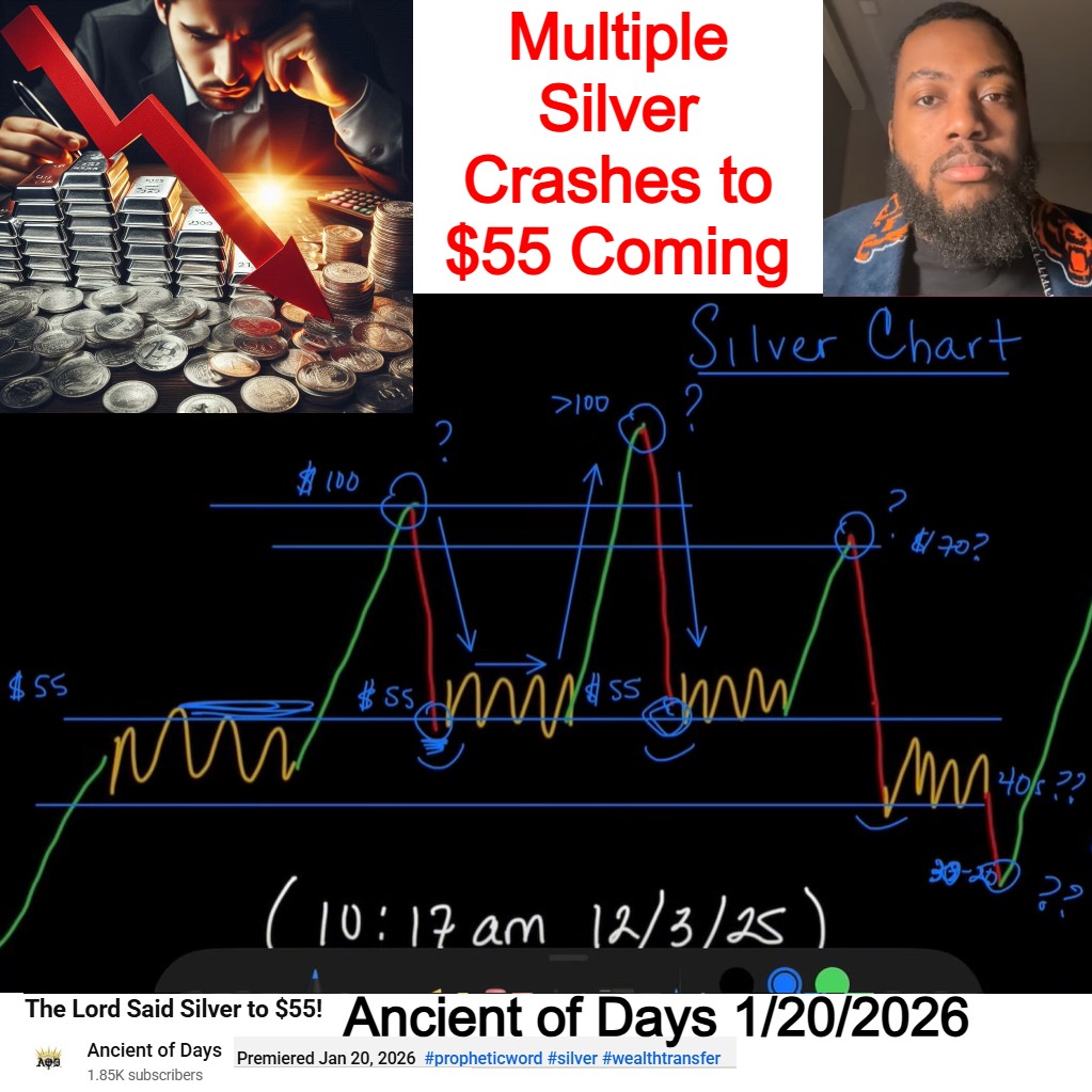Silver crash to $55 multiple times. Prophetic word by Ancient of Days on 1/20/2026. See partial transcript, AI summary, and video link below: