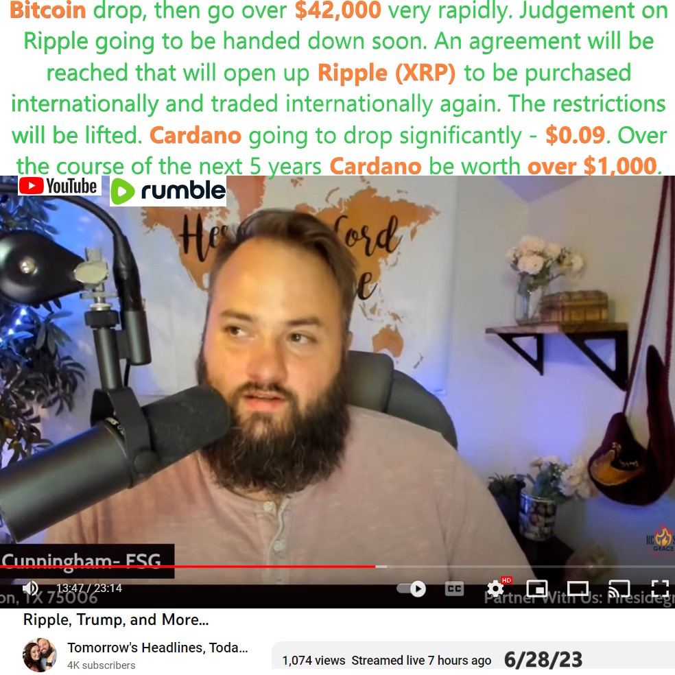 On 6/28/23 Robyn Cunningham shared new prophetic words regarding Crypto – Bitcoin, XRP, Cardano, Ripple Lawsuit. See partial transcript and video links below: