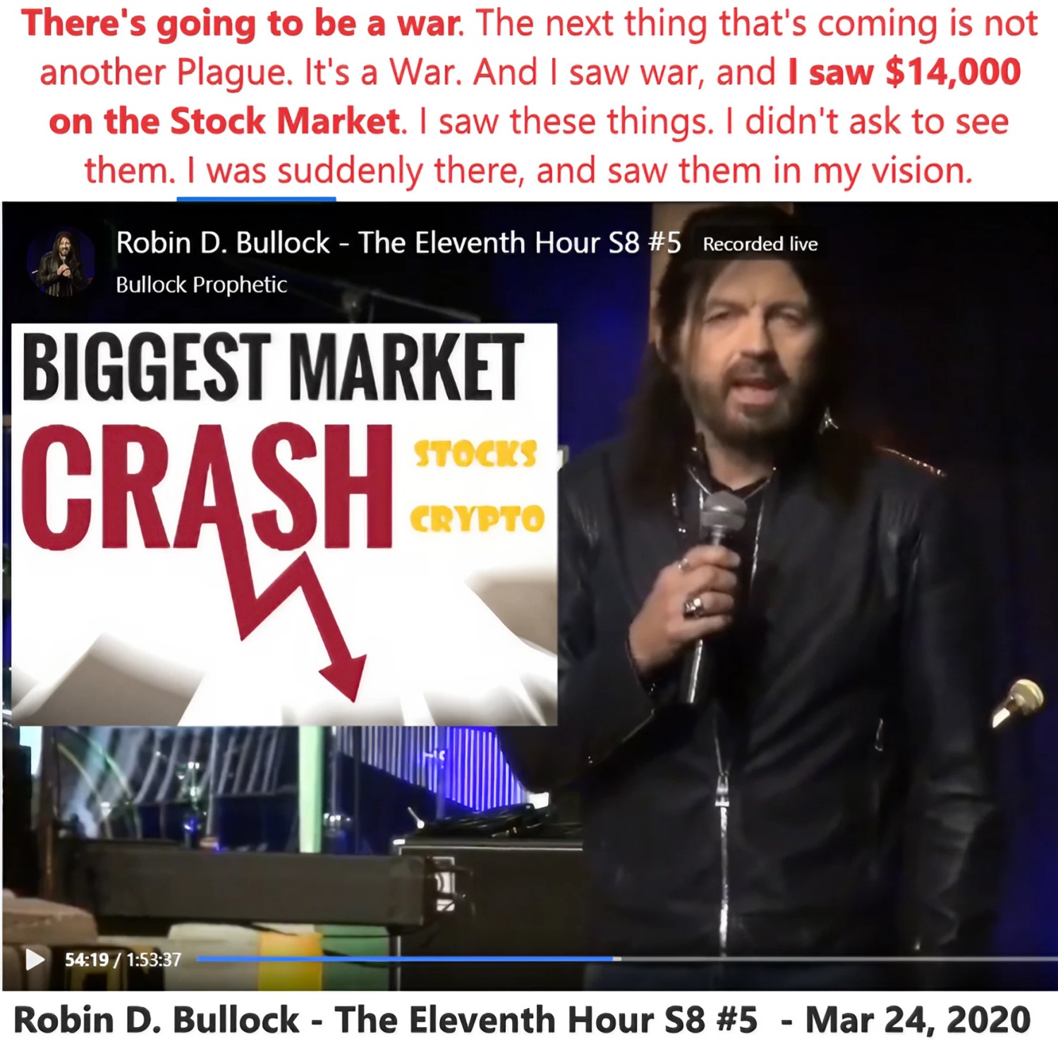 “I saw War, and I saw 14,000 on the Stock Market” prophetic word given by Robin D Bullock 3 years ago on 3/24/2020. See partial transcript and video link below: