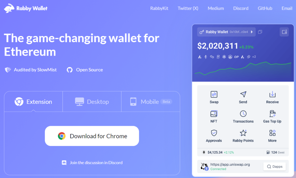 1. Download and Install Rabby Wallet extension in your browser from the Rabby website (https://rabby.io/). Although I used a browser extension, a mobile app might work also (I did not test). I used Edge browser which allows chrome extensions. But other browsers might also work. You can also download an application for windows/mac.