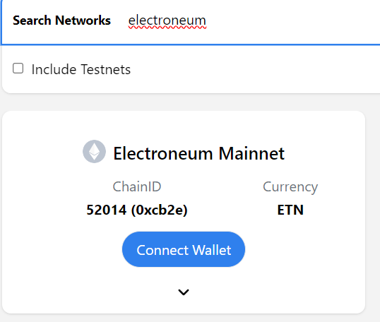 3. Go to Chainlist website and search for Electroneum: https://chainlist.org/ or https://chainlist.wtf