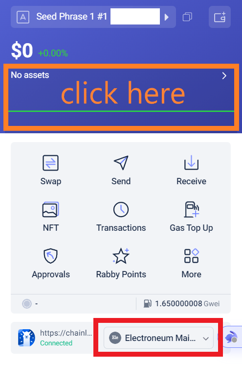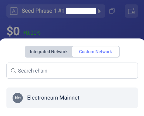 5. Open wallet extension. It should display “Electroneum Mainnet” at the bottom.