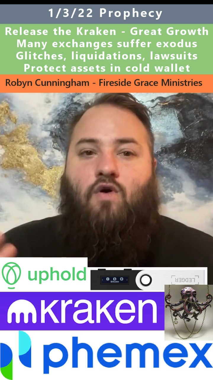 Release the Kraken: Altcoins Surge as Major Platforms Collapse. Kraken, Phemex, Uphold prophecy by Robyn Cunningham on 1/3/22. See partial transcript and video link below: