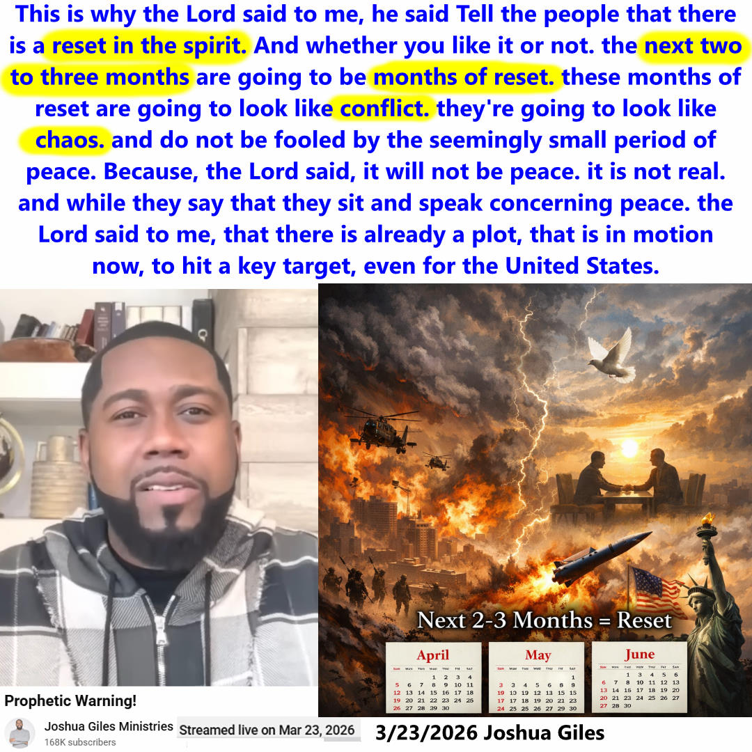 Next 2 to 3 Months (April to June) are going to be months of Reset. Prophecy by Joshua Giles on3/23/2026. See partial transcript, ai summary, and video link below: