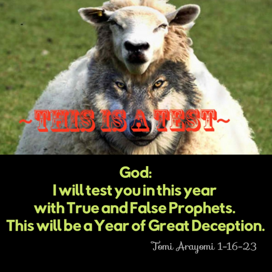 God: I will test you in this year with True and False Prophets. This will be a Year of Great Deception. (Tomi Arayomi 1-16-23)