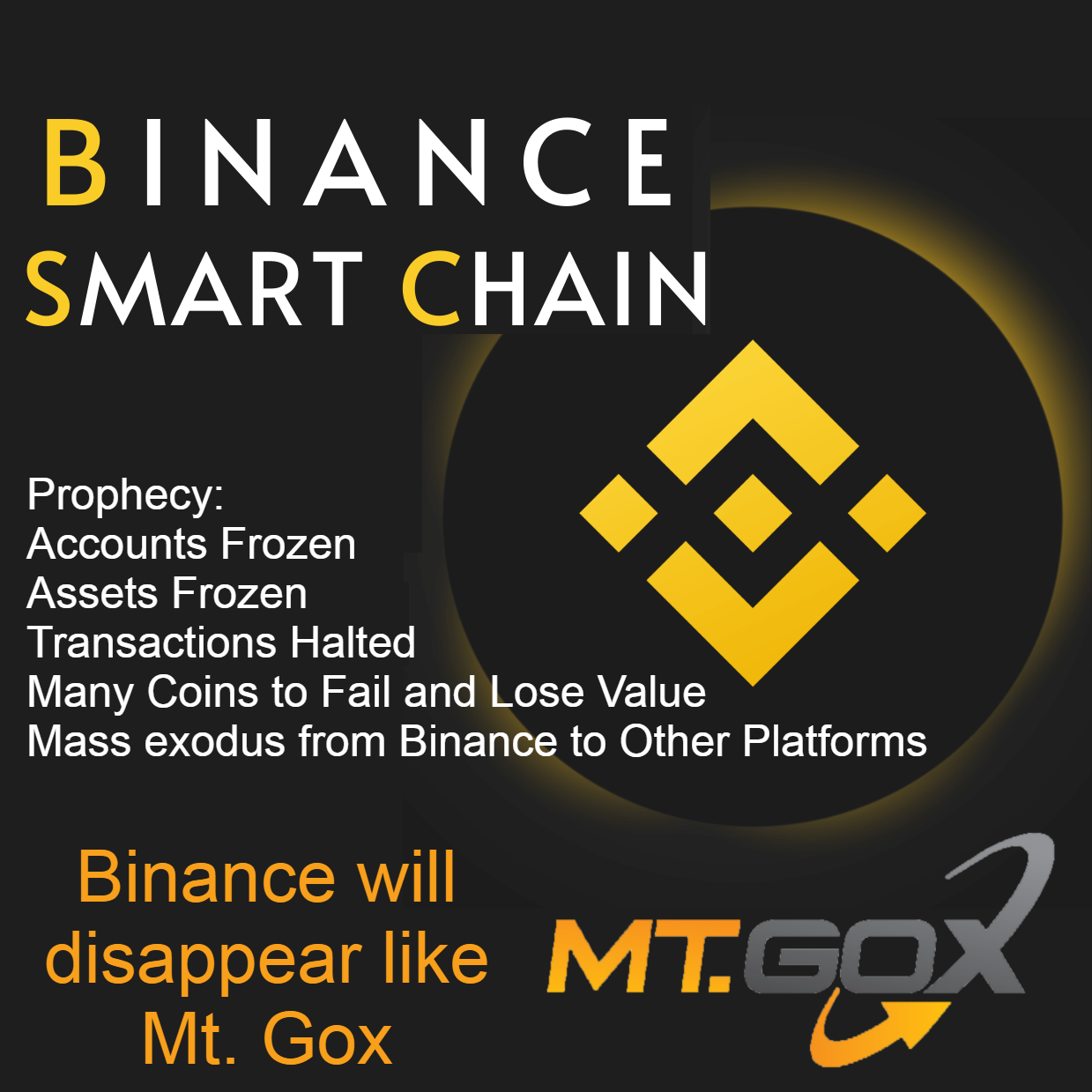Binance and Binance Smart Chain (BSC) crash prophecies. Please Understand, that If Binance Smart Chain fails, then the Binance coins like BNB, BNB Tiger, BNB Lion, etc… will also fail.