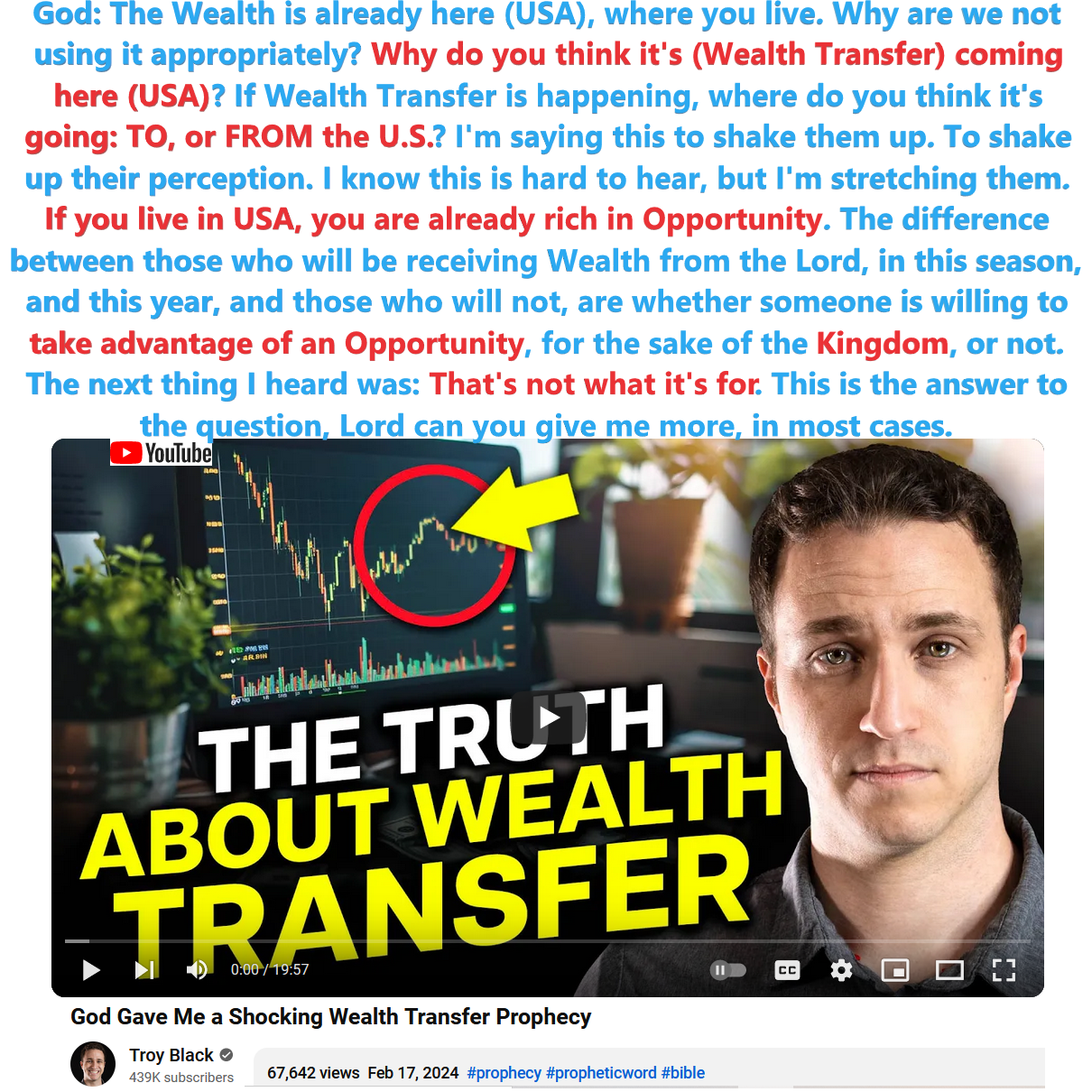 Shocking Wealth Transfer prophecy by Troy Black on 2/17/24. Wealth Transfer (mostly) not for America? See partial transcript and video link below: