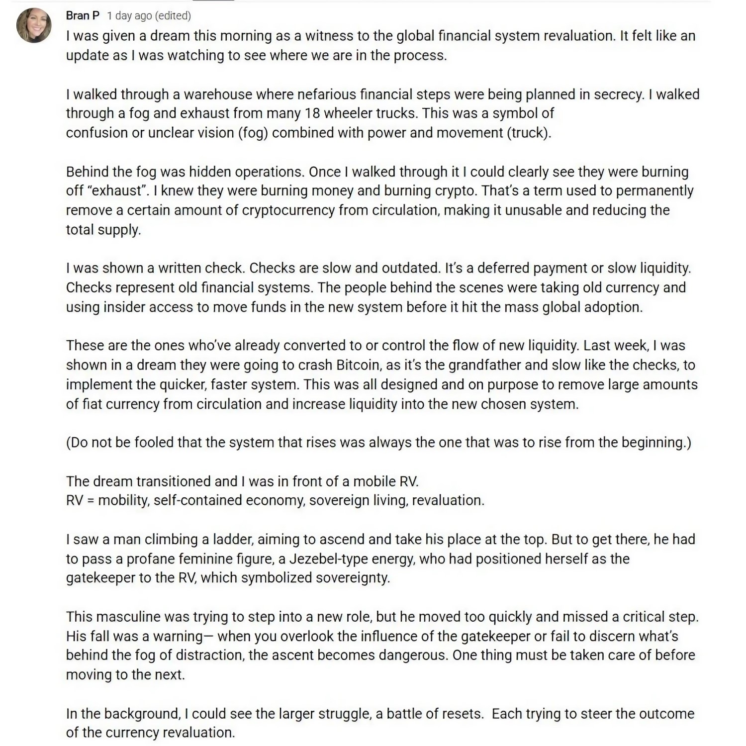These are the ones who’ve already converted to or control the flow of new liquidity. Last week, I was shown in a dream they were going to crash Bitcoin, as it’s the grandfather and slow like the checks, to implement the quicker, faster system. This was all designed and on purpose to remove large amounts of fiat currency from circulation and increase liquidity into the new chosen system.