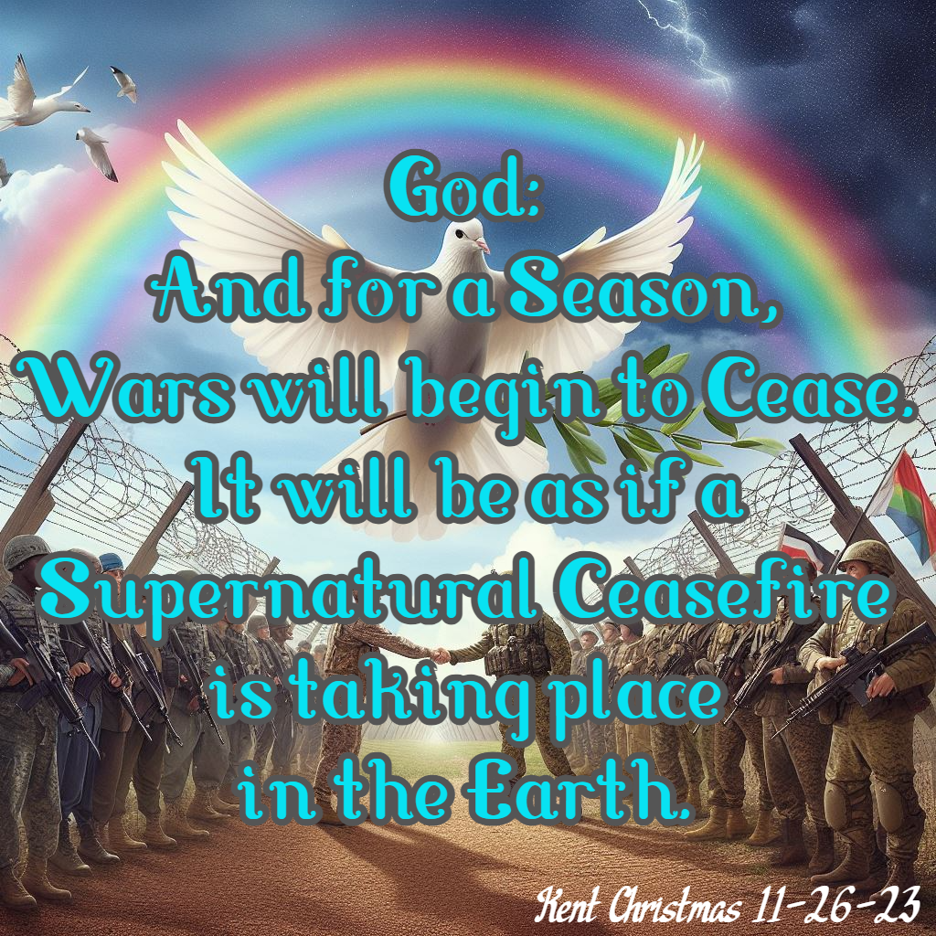 God: And for a Season, Wars will begin to cease. It will be as if a Supernatural Ceasefire is taking place in the Earth. (Kent Christmas 11-26-23)