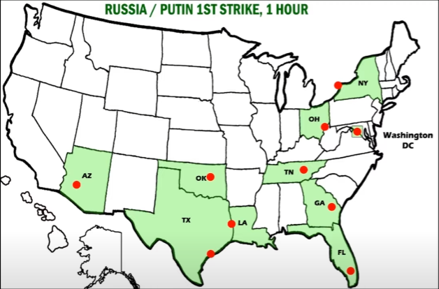 • Russia / Putin 1st Strike 1 hour - Arizona, Texas, Oklahoma, Louisiana, Tennessee, Georgia, Florida, Ohio, New York, Washington DC