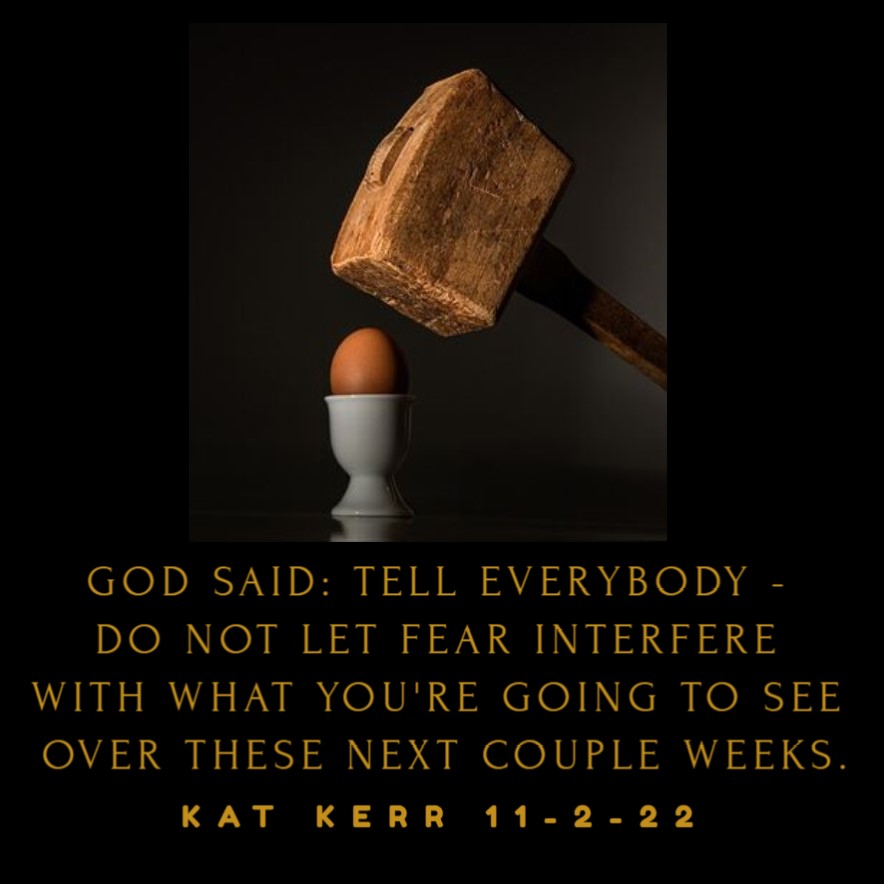 God said: Do not let fear interfere with what you’re going to see over these next couple weeks. It has nothing to do, with what He (God) is going to do, whatsoever. Prophecy by Kat Kerr on 11-2-22. See partial transcript and video link below: