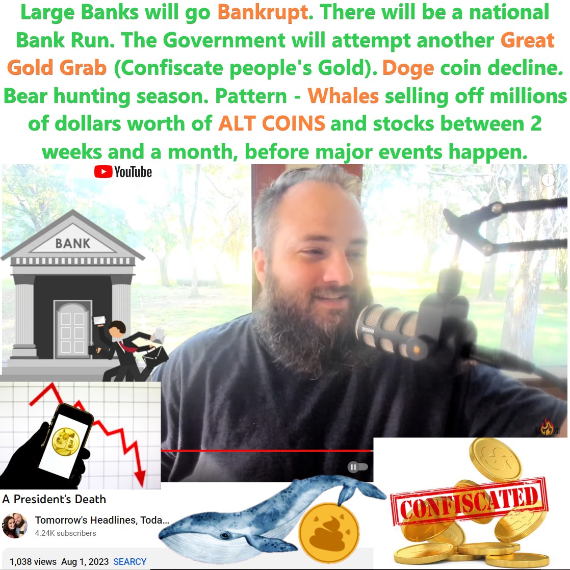 - A pattern will be exposed: whales sell off coins and stocks approximately two weeks to a month before major events occur. This specific insider trading pattern will be investigated and exposed, which will be “huge”.
