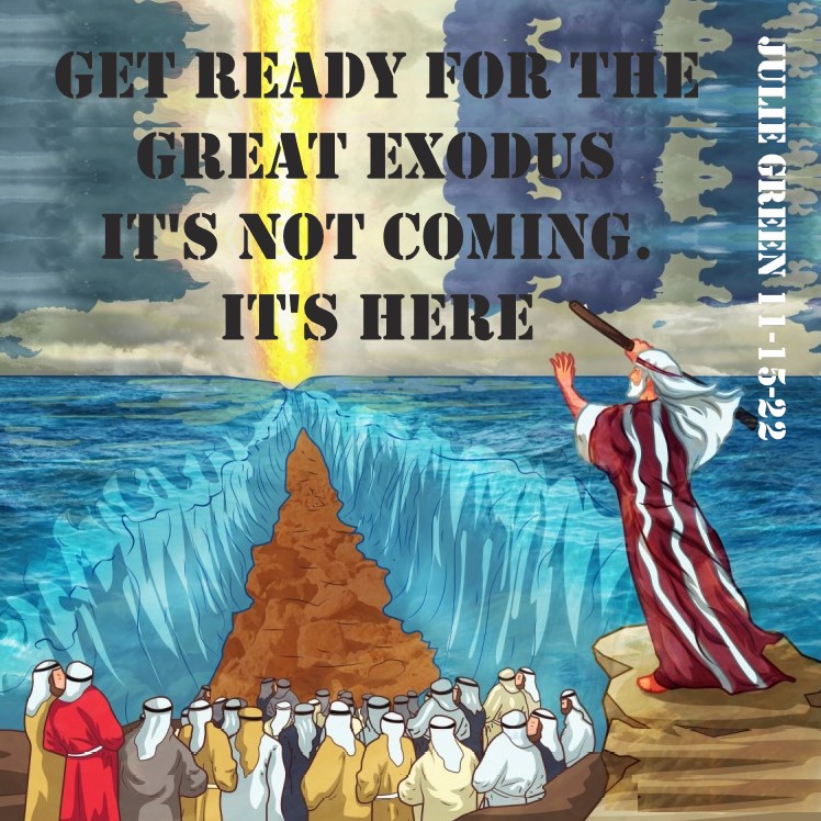 My children, in this time, get ready for a great silence, get ready for rolling blackouts, get ready for my lock-in, get ready for the Great Exodus. It is not coming, it’s here. (Julie Green 11-15-22)