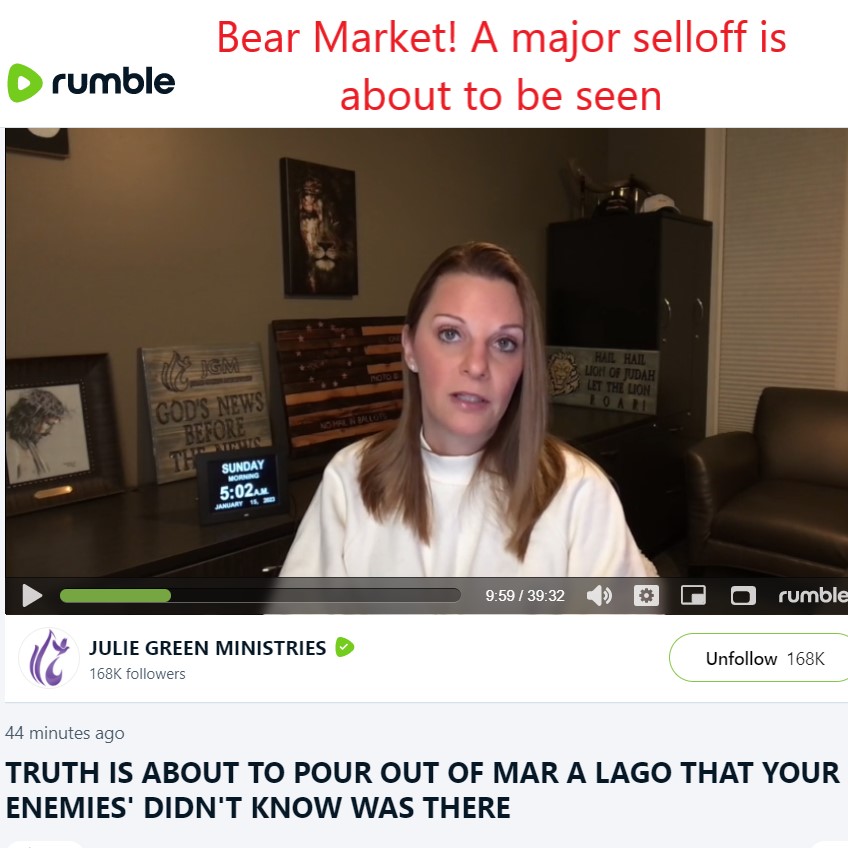 Julie Green has released a prophecy on 1/23/23 regarding the Bear Market – A major selloff is about to be seen. See video link and partial transcript below: