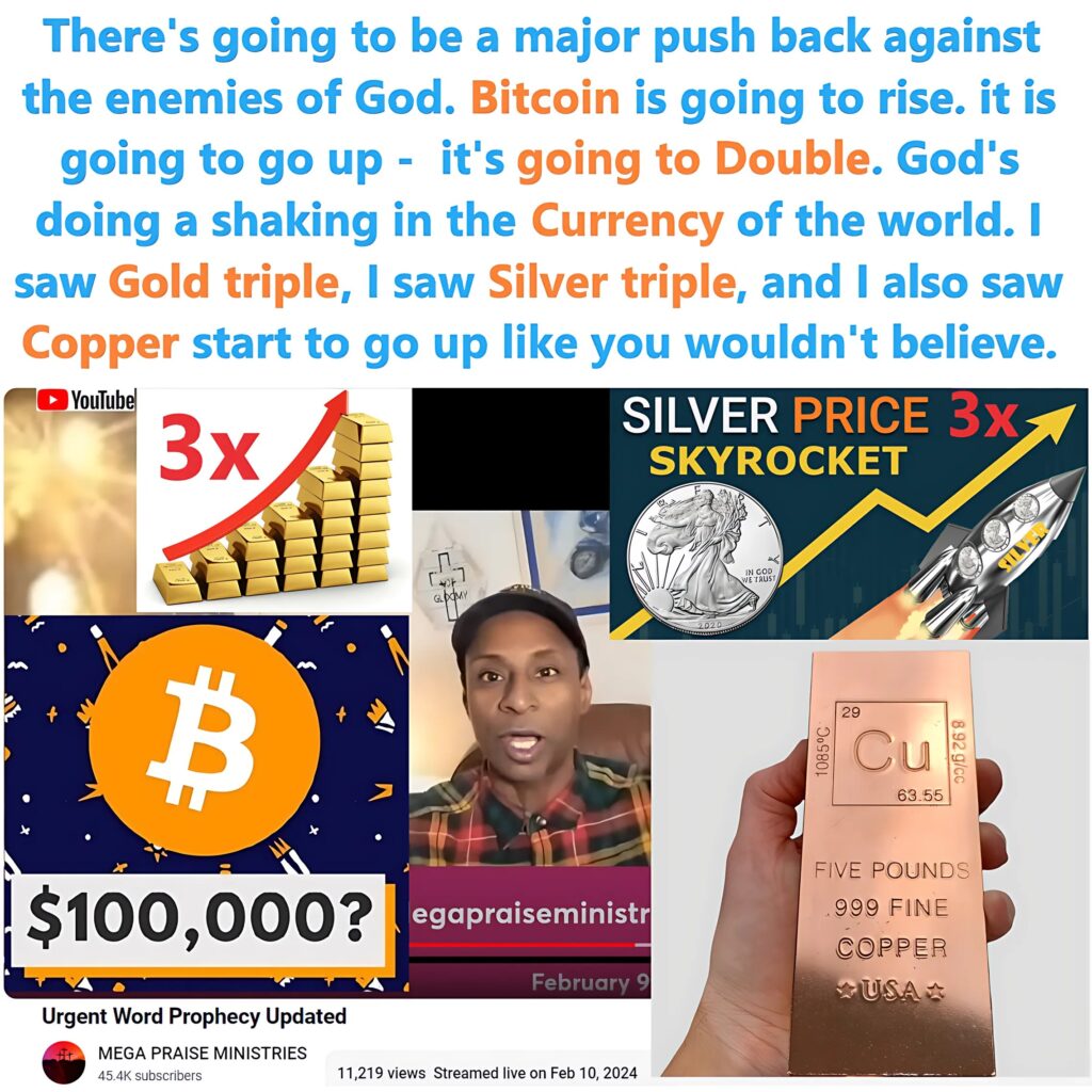 Manuel Johnson — Get ready Saints for what’s taking place, especially with the Gold, the Silver, and the Copper. And I heard the words: “Many people had said to themselves, I should have invested in copper”…