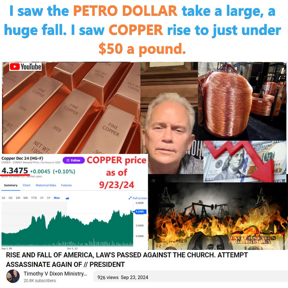 DOLLAR CRASH and $50 COPPER. Prophecy by Timothy Dixon on 9/23/24. See partial transcript and video link below: