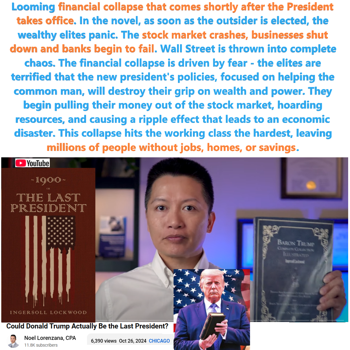 Have you heard of this Orwellian type book (The Last President) written in 1896, that predicts what’s about to happen after Trump wins the November Election. Financial collapse comes right after.