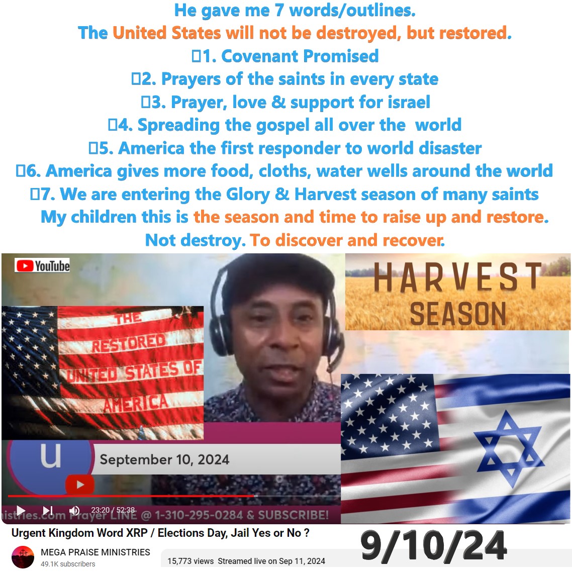 This is the season and time to raise up and restore. Not destroy. To discover and recover. Prophecy by Manuel Johnson on 9/10/24. See partial transcript and video link below: