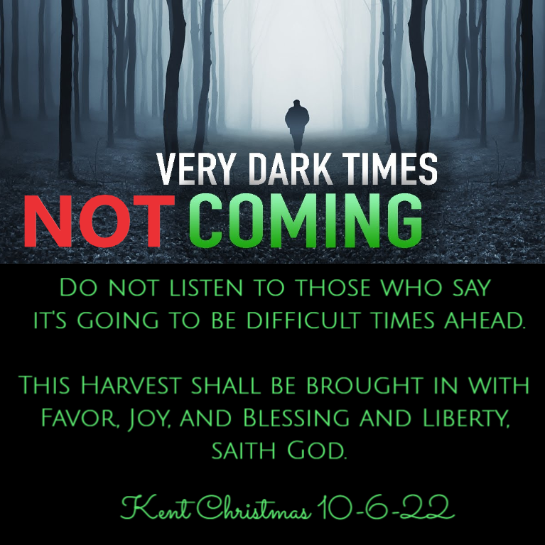 Do not listen to those who say it’s going to be difficult times ahead. My people have already lived in difficult times, and they stood in Covenant with me. This Harvest shall be brought in with Favor, Joy, and Blessing and Liberty, saith God. (Kent Christmas 10-6-22)