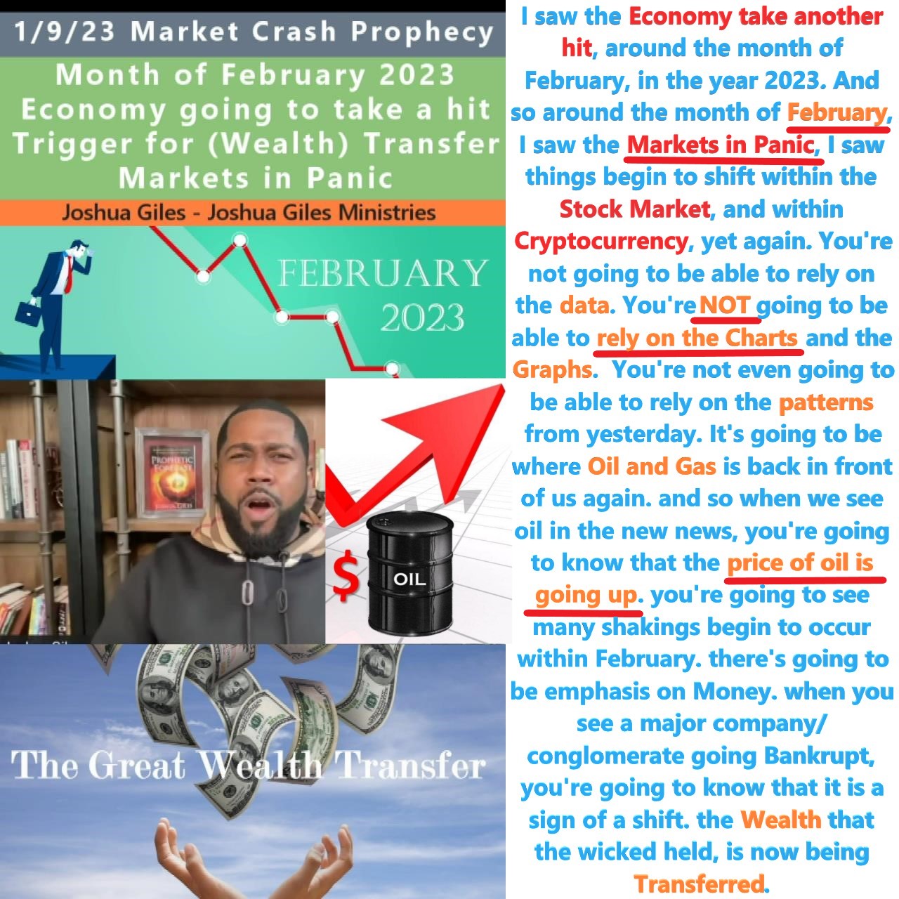 Wealth Transfer, Economic Decline, Markets in Panic in February. Prophecy by Joshua Giles on 1/9/23. See partial transcript and video link below.