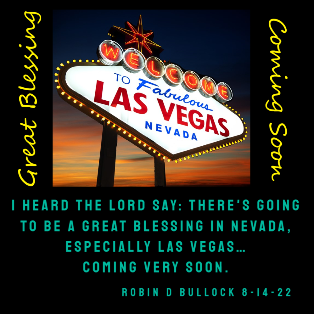I heard the Lord say: There’s going to be a Great Blessing in Nevada, especially Las Vegas. And it Won’t look like a Blessing to a lot, but it will be to others. And you’ll see that develop, and you’ll understand. Coming VERY SOON.