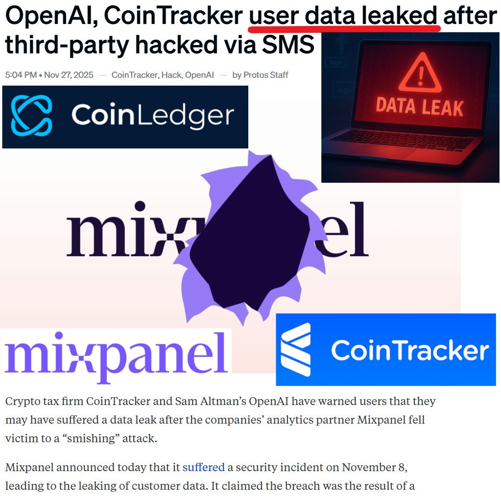 Breaking: CoinTracker & CoinLedger crypto data leaked via Mixpanel (their 3rd-party provider). These platforms are used for tracking crypto wallet balances and transactions.