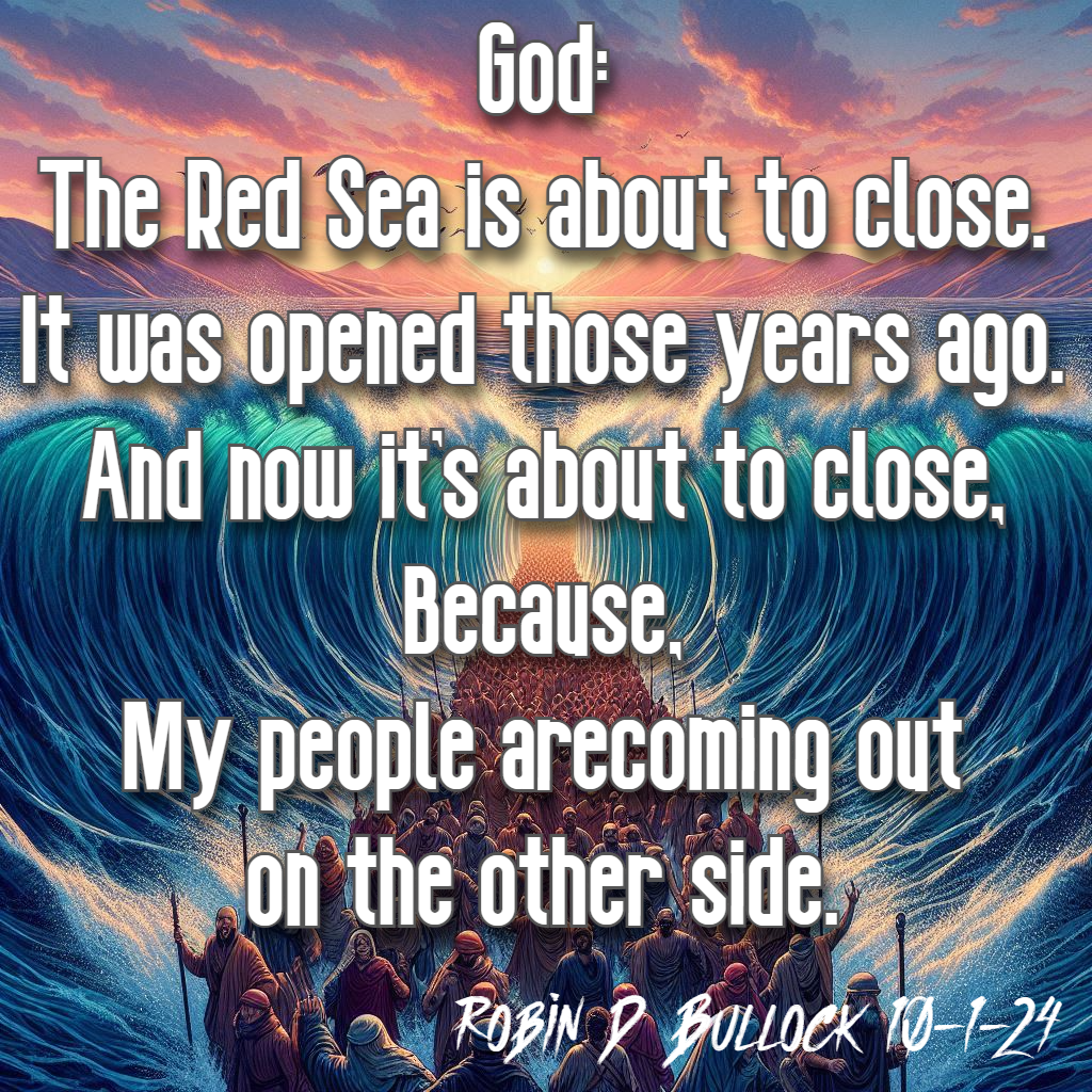 God: The Red Sea is about to close. It was opened those years ago. And now it’s about to close, because My people are coming out on the other side. (Robin D Bullock 10–1–24)