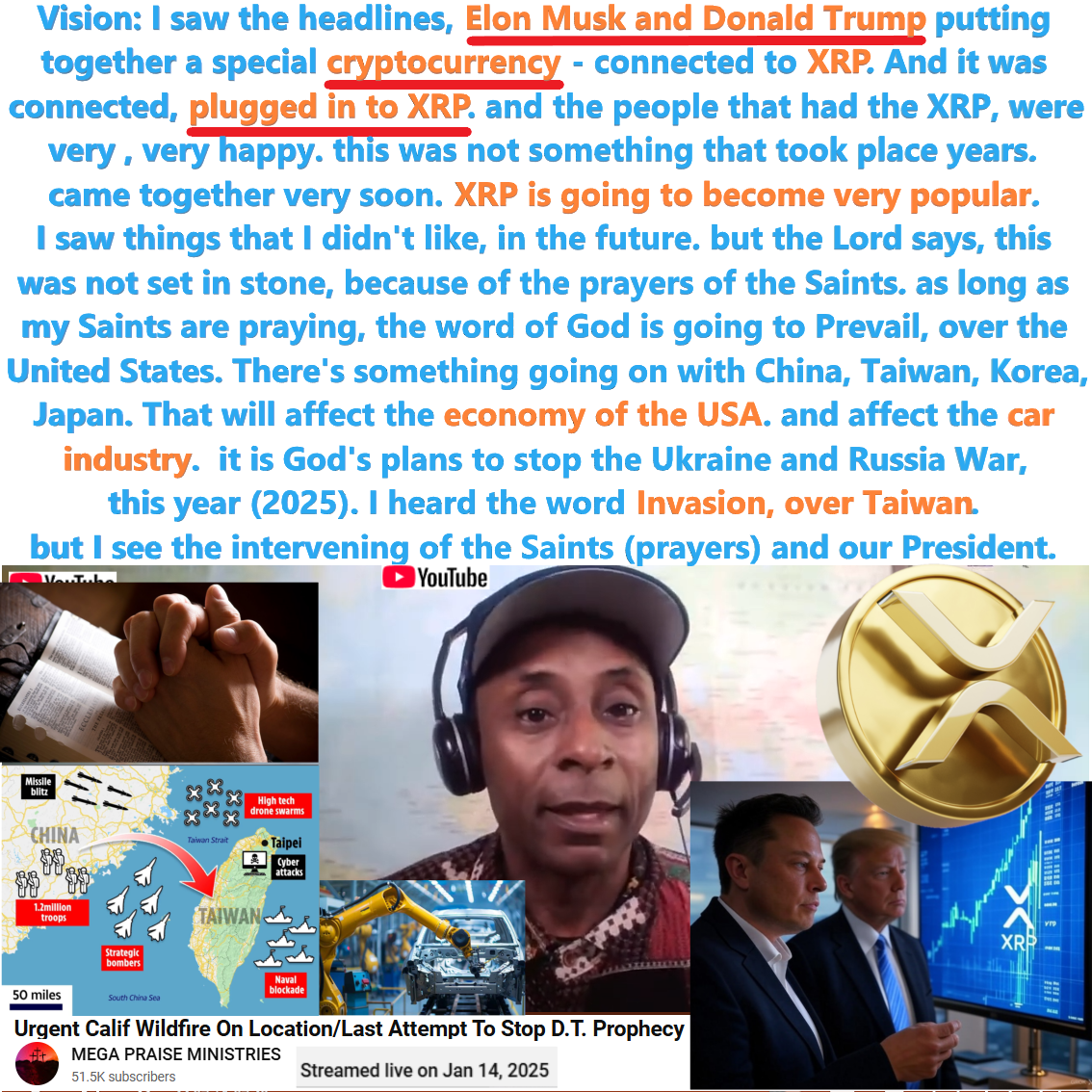Elon Musk & Donald Trump put together a special cryptocurrency connected/plugged into XRP. Prophecy by Manuel Johnson on 1/14/25. See partial transcript and video link below: