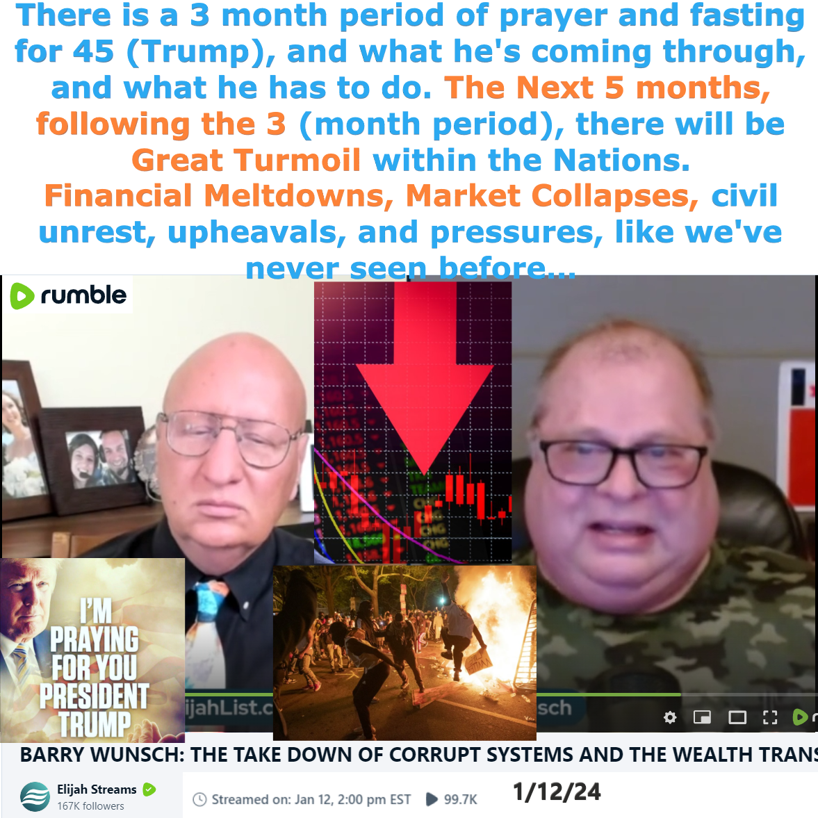 Financial Meltdowns, Market Collapses coming. Prophetic Word shared by Barry Wunsch on 1/12/24. See partial transcript and video link below: