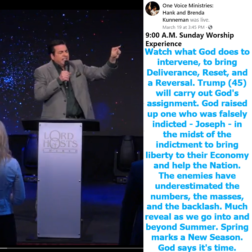 On 3/19/23 Hank Kunneman shared a new Prophetic message regarding Trump (45). Please see my summary, video link, and transcript below: