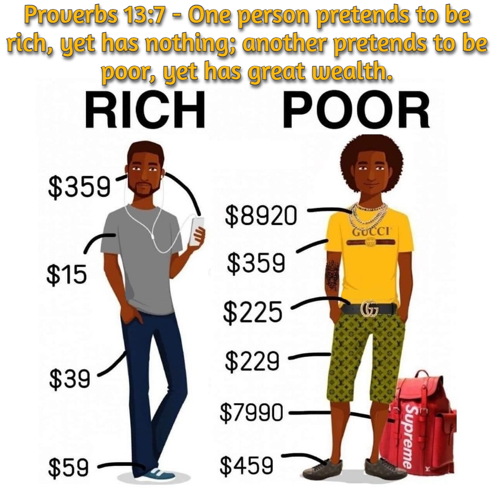 I found this cool Bible Verse – “Proverbs 13:7 – One person pretends to be rich, yet has nothing; another pretends to be poor, yet has great wealth.” I bet many of us do this all the time. But the problem with this mentality is that no amount of money is ever enough, because, of the constant need to buy more “things”, to impress people that don’t really matter. Make sure you are a Good Steward with the Wealth Transfer that you are about to receive. #wealthtransfer