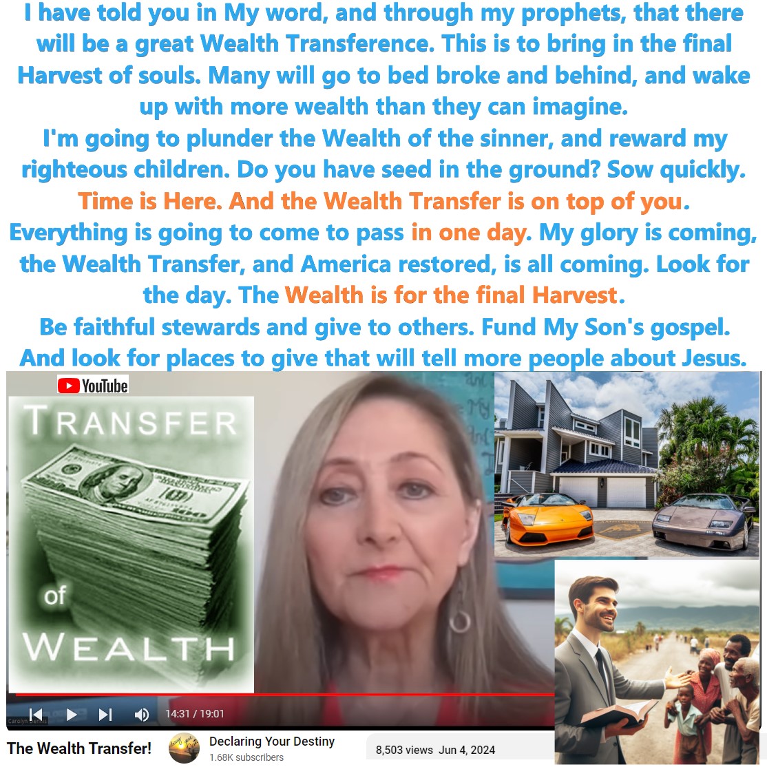Wealth Transfer prophecy by Declaring Your Destiny channel. See partial transcript and video link below: