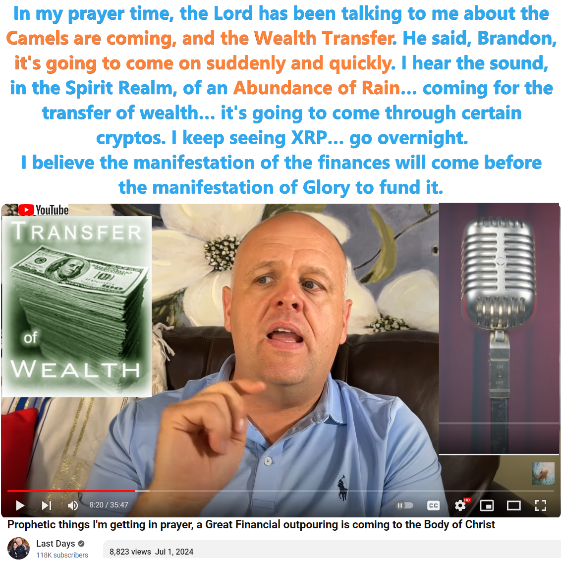 New Wealth Transfer prophetic word by Brandon from Last Days channel. See partial transcript and video link below: