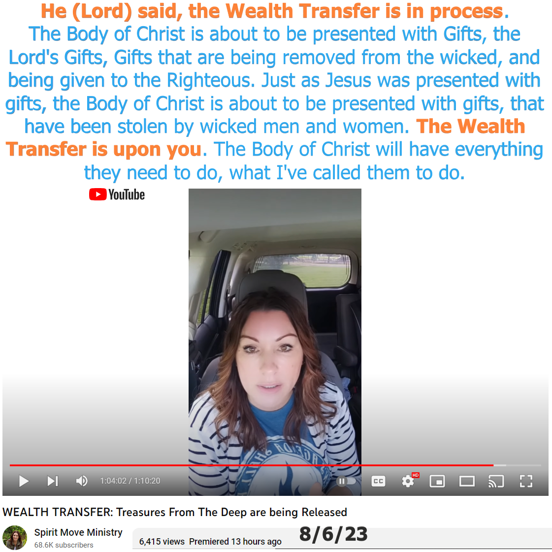 THE WEALTH TRANSFER IS IN PROCESS – Prophetic Word by Liberty Turnipseed (Spirit Move Ministry). See partial transcript and video link below: