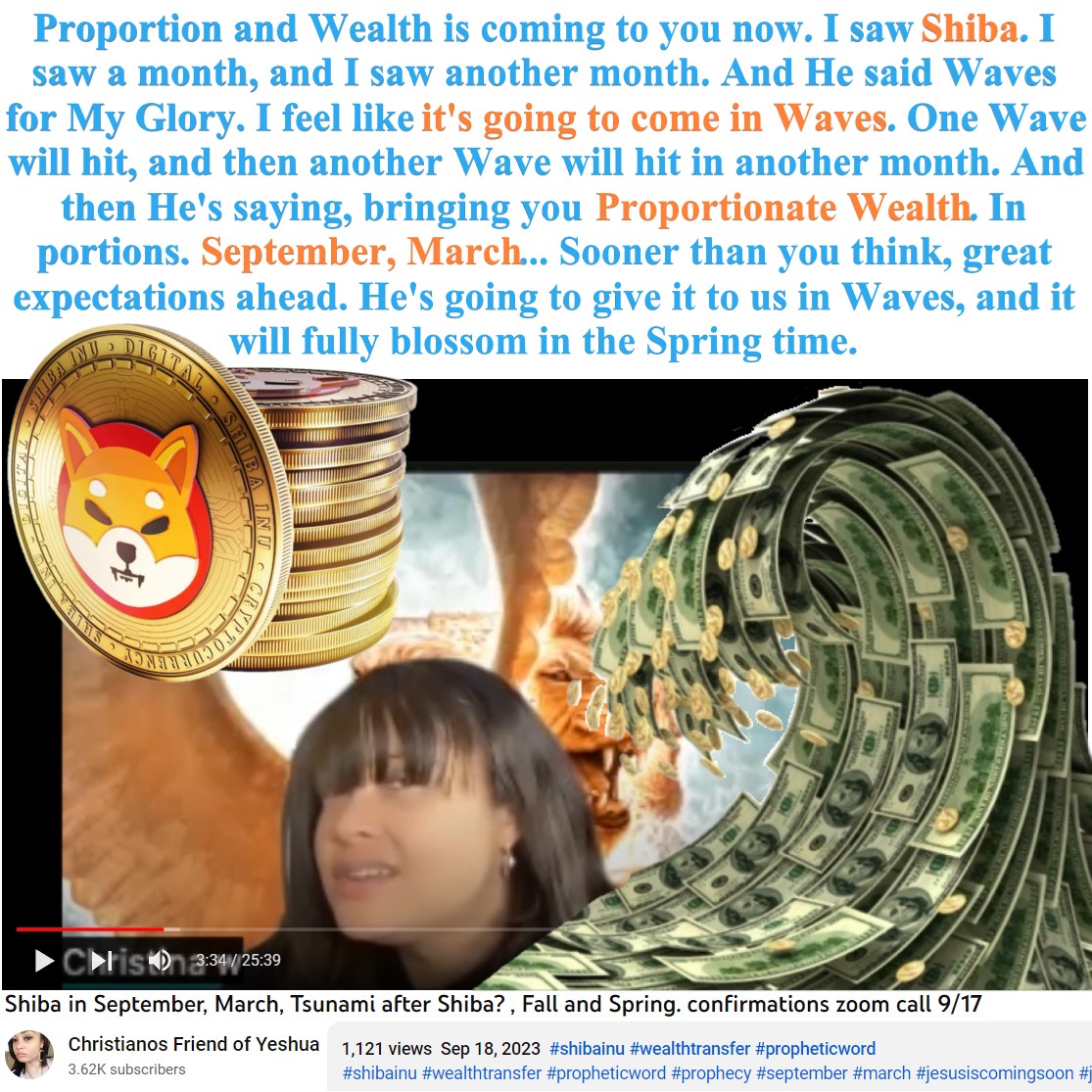 Wealth Transfer Shiba Inu in September and March prophecy by Christina. See partial transcript and video link below: