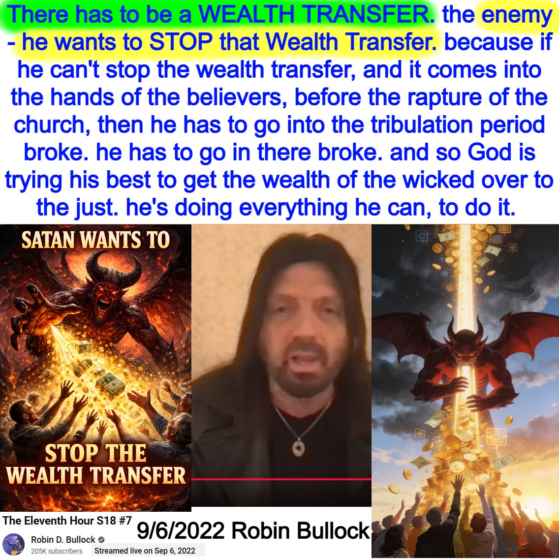 The Enemy wants to Stop the WEALTH TRANSFER. Prophetic Teaching by Robin Bullock on 9/6/2022. See partial transcript, ai summary, and video link below: