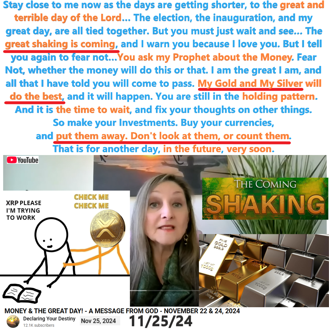 Buy your currencies, and put them away. Prophecy by Carolyn Dennis on 11/25/24. See partial transcript and video link below.