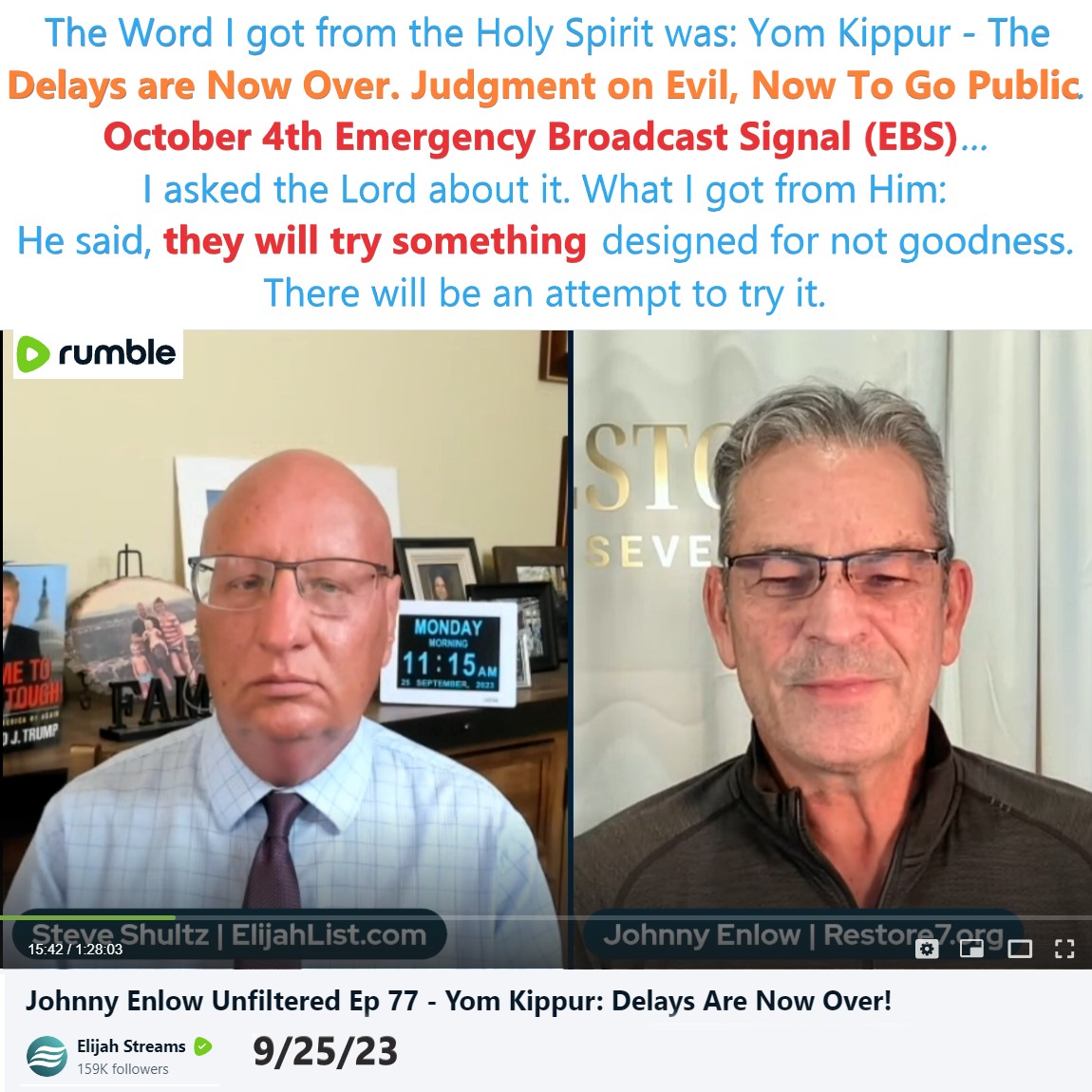 On 9/25/23 Johnny Enlow shared a new Prophetic Word. See partial transcript and video link below: